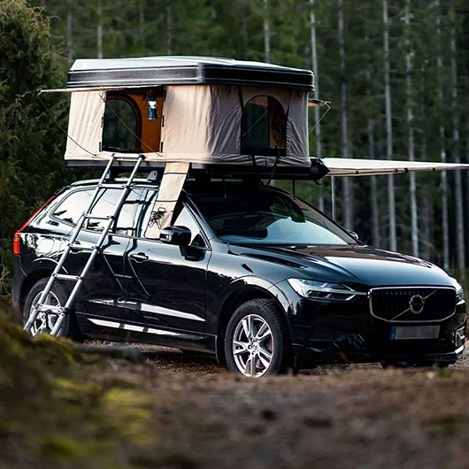 Invändigt är taktältet utrustat med en bekväm madrass, med en teleskopisk stege tar ni er upp i tältet – vilket ger säker och bekväm åtkomst oavsett fordonshöjd.