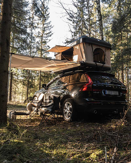 Med några enkla handgrepp fälls tältet upp på bara ett par minuter – perfekt när du anländer sent till lägerplatsen eller vill resa snabbt mellan olika destinationer. Tältet förvaras i ett skyddande hårt skal (tältbox) som öppnas smidigt med hjälp av gasdämpare. Det gör att du utan ansträngning kan vika upp taket, dra ut stegen och trycka den nedåt för att veckla ut golvet till en färdig sovplats på nolltid.